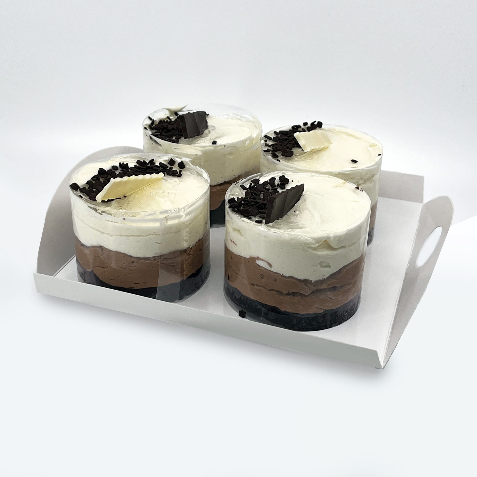 Mini deserturi elegante, cu blat fin și aerat, învăluite în mousse de ciocolată catifelată și glazură lucioasă. Fiecare tortuleță oferă o combinație rafinată de texturi și arome intense de ciocolată, pentru o experiență dulce memorabilă.